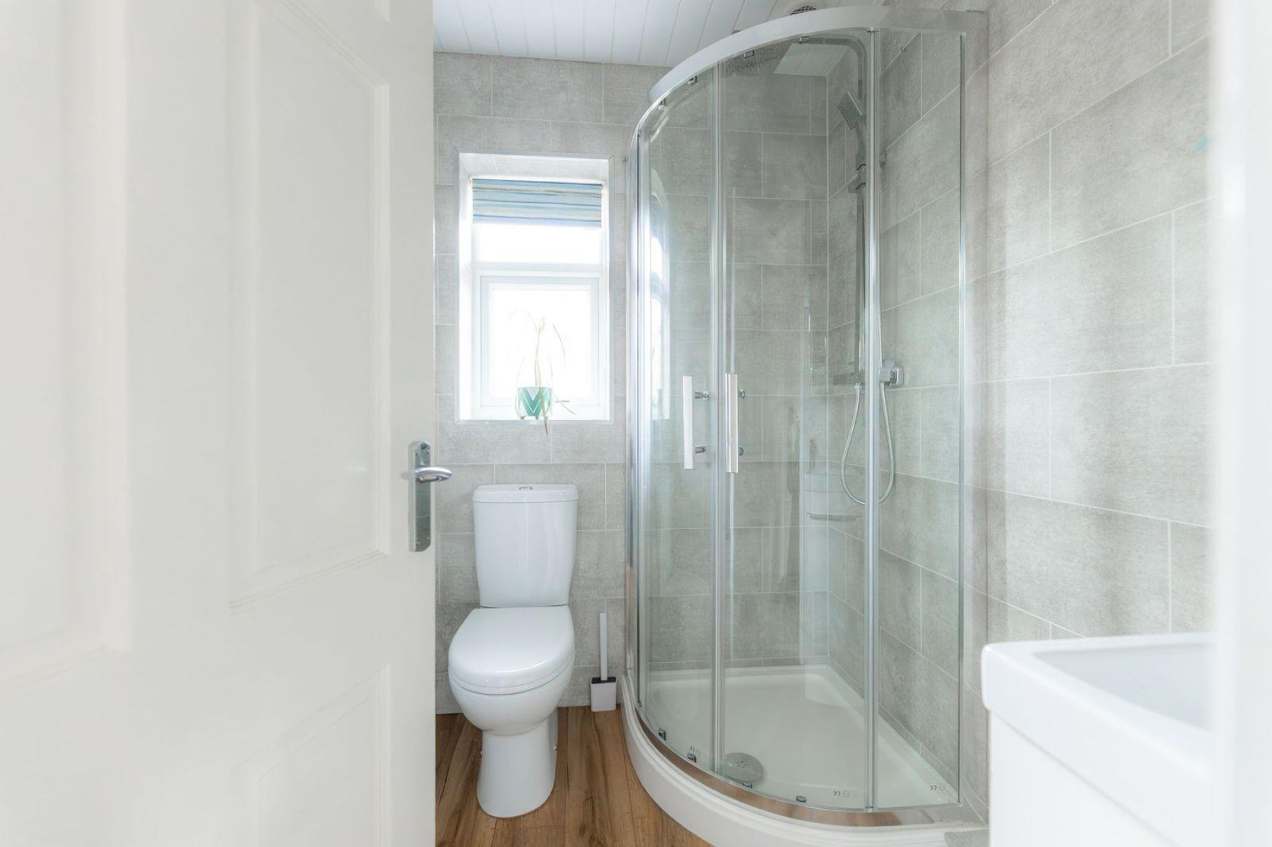 Bathroom - With a door leading from the entrance hall, hot & cold 'Fountain' WC, hand wash basin, shower cubicle with glass screen, store cupboard with utility outlet points, a double glazed window to the side and a central heating radiator