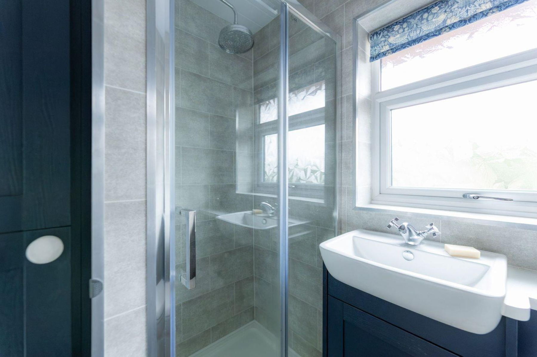 En-Suite - With a door leading from the bedroom, hot & cold 'Fountain' WC, hand wash basin, corner shower cubicle with glass screen, a double glazed window to the side and a central heating radiator