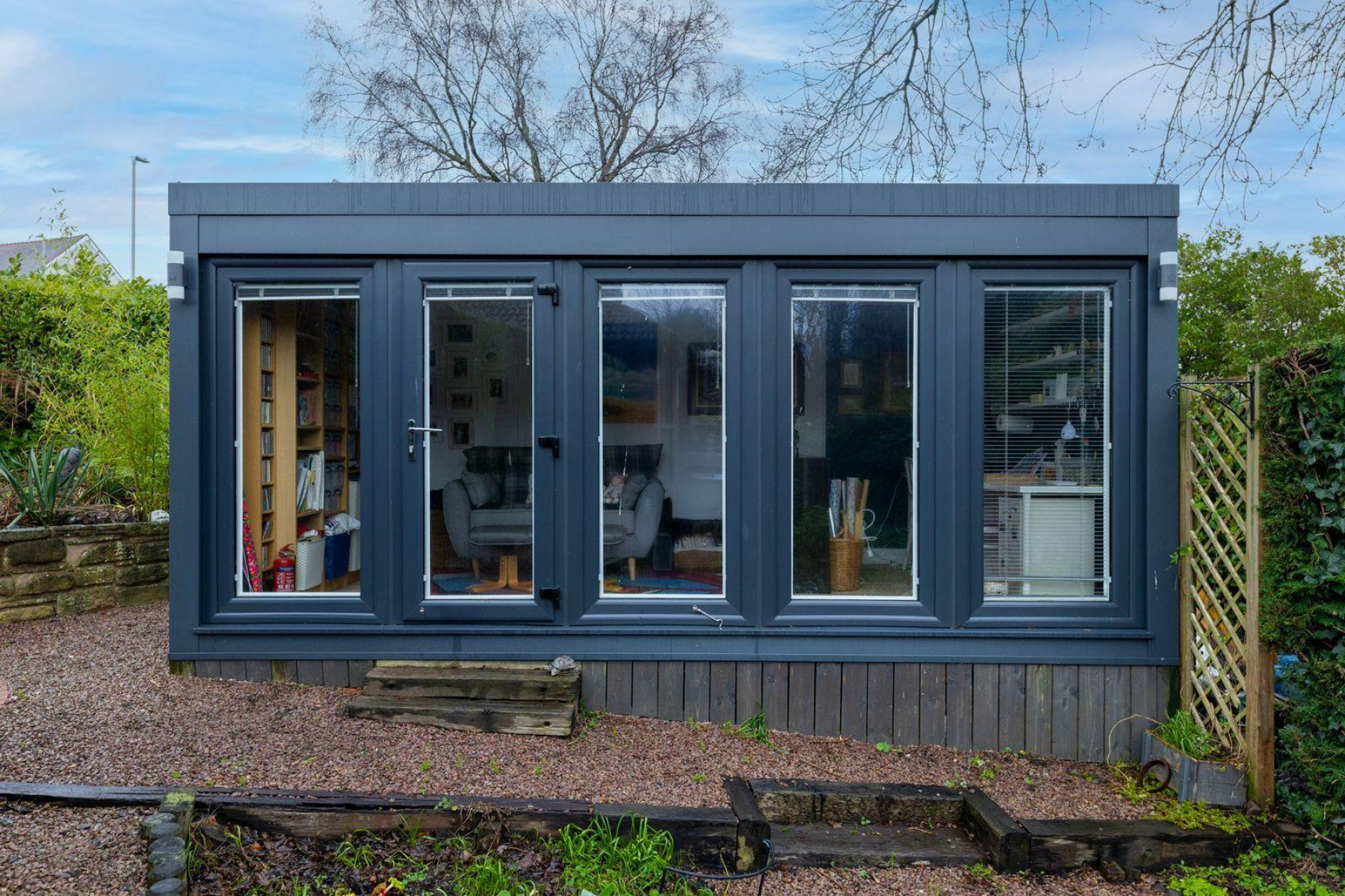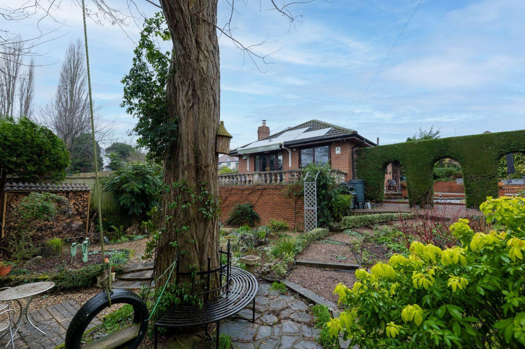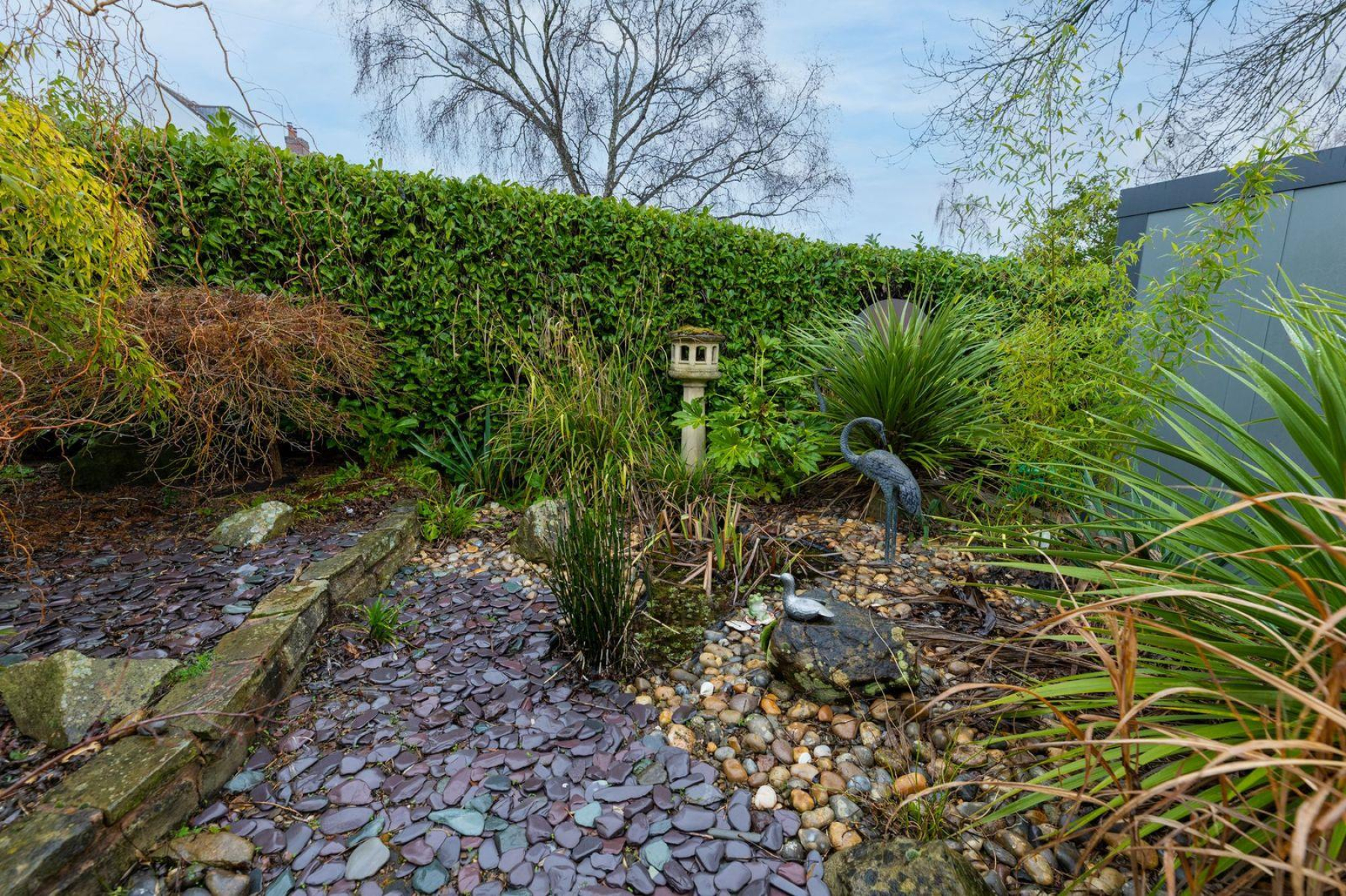Garden - One of the standout features of this bungalow is its deceptively large and exceptionally well-designed garden, set within a generous and clearly defined plot. Thoughtfully landscaped and arranged across multiple levels, the garden offers a series of distinct yet interconnected spaces, including an elegant raised terrace accessed directly from both the living room and principal bedroom, a beautifully arranged multi-level patio area, purpose built log-store and further paved seating areas ideal for entertaining. Mature planting, established hedging and specimen trees create a high degree of privacy throughout, while a contemporary and well-appointed garden room provides an excellent space for home working, hobbies similar.