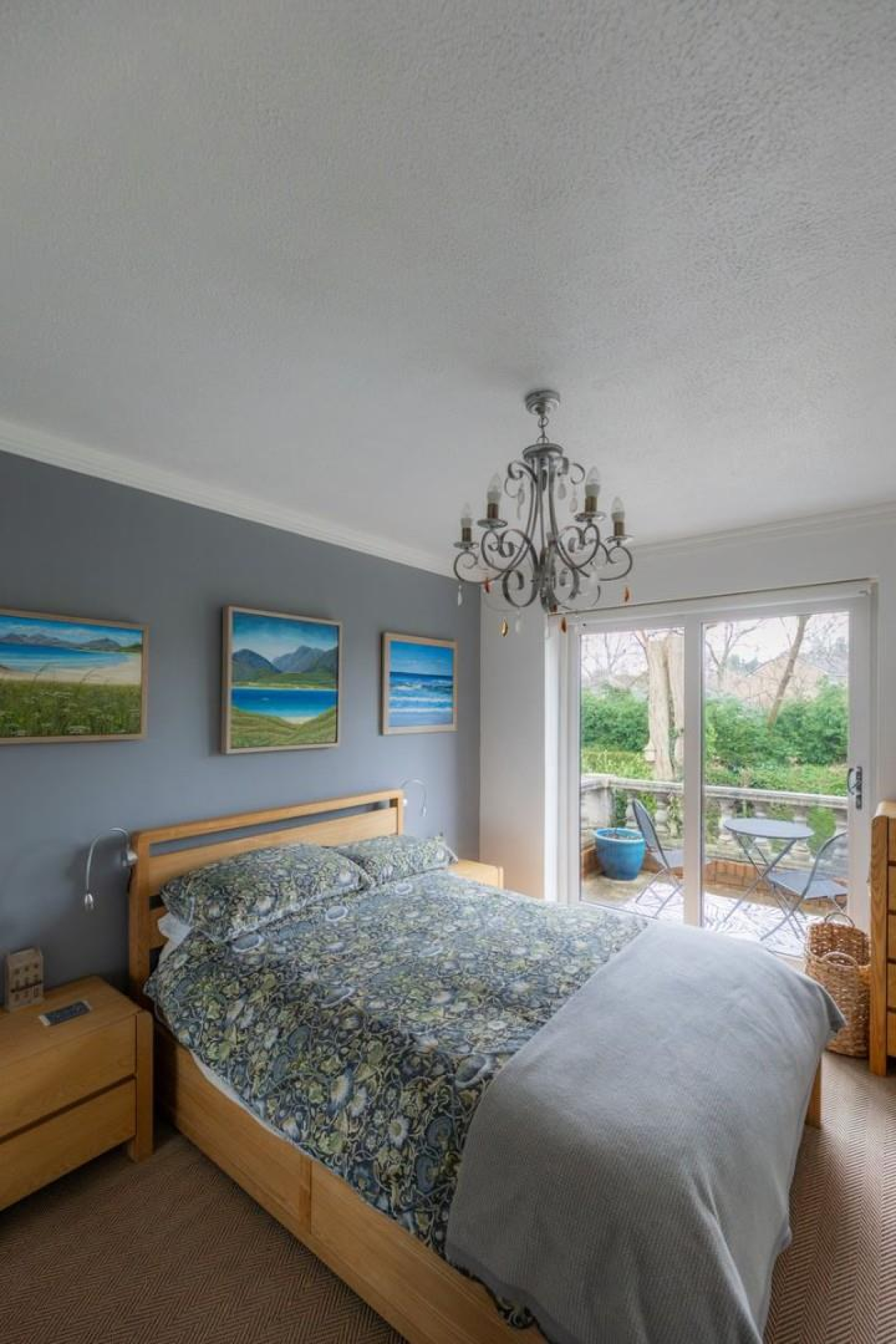Internally, the accommodation is well balanced and finished to a high standard throughout. A welcoming hallway leads to a modern fitted kitchen, complete with sleek cabinetry and integrated appliances, while the main living room provides a bright and inviting space featuring a focal fireplace and French doors opening directly onto a raised terrace. This creates a seamless connection between the interior and the beautifully landscaped gardens beyond.