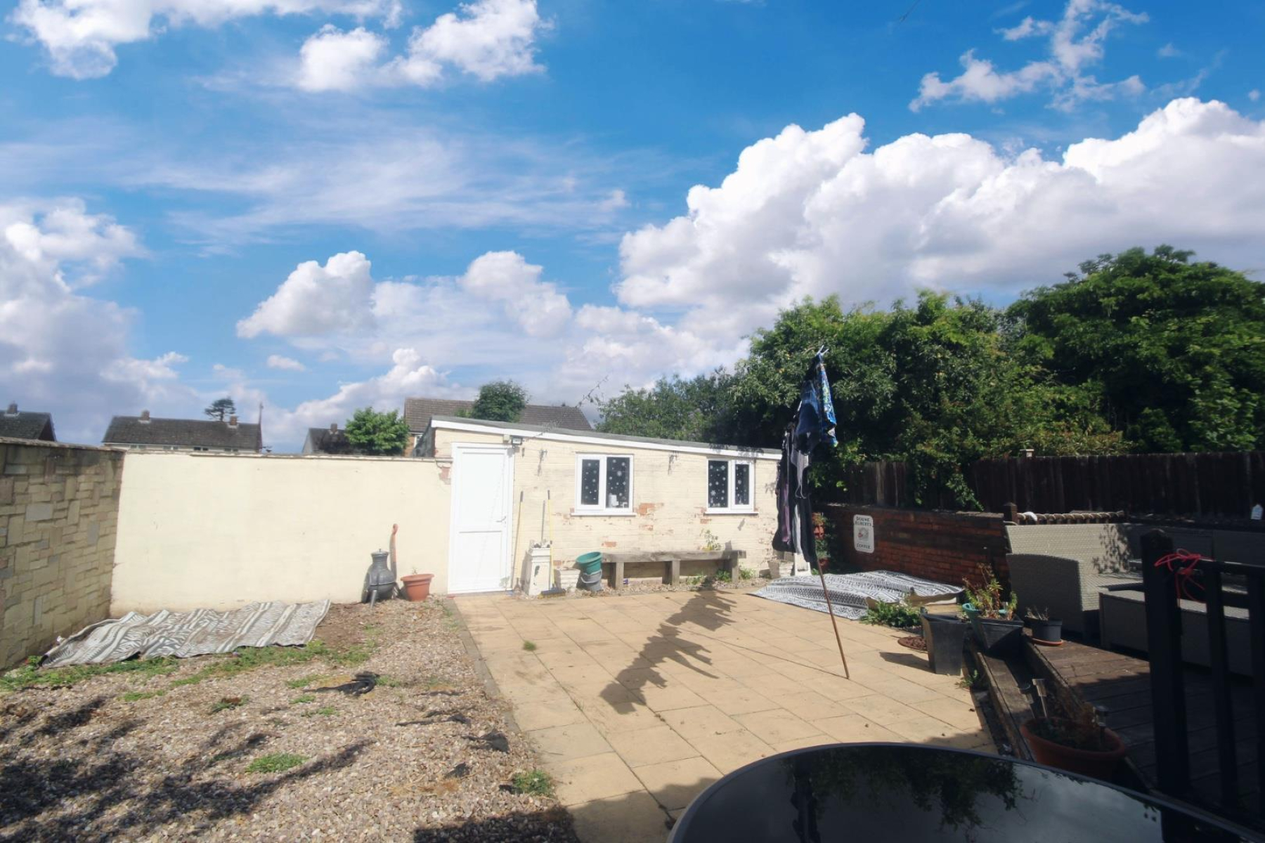Well-equipped fitted kitchen with integrated oven, gas hob, breakfast bar with stools, and access to the rear garden. A perfect social hub for families or gatherings.
