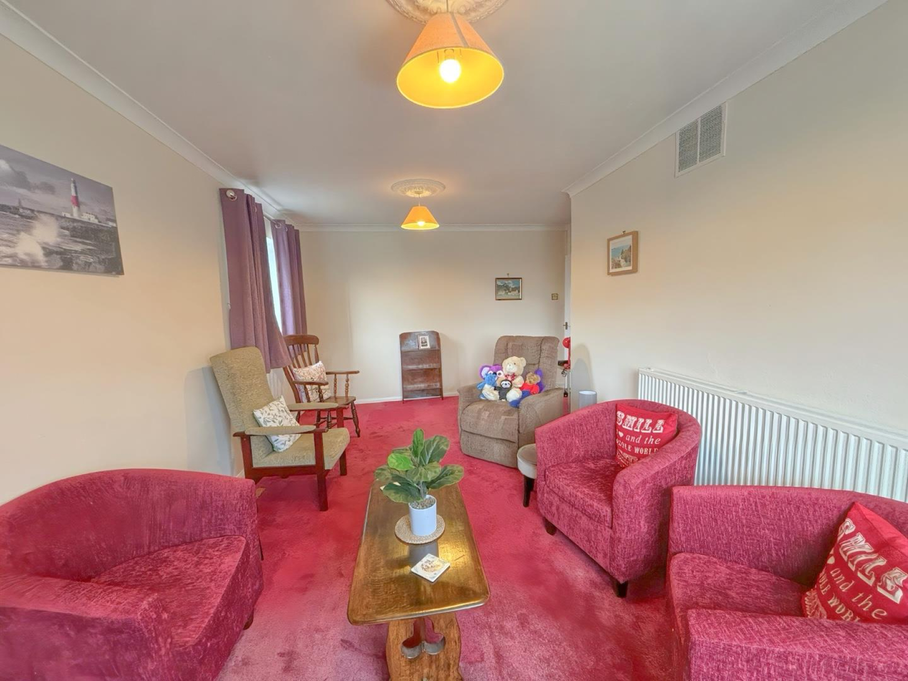 Living Room - 3.88m x 5.93m (12'8" x 19'5") - A bright and spacious lounge stretching nearly 6 metres in length. Features a large bay window, fitted carpet, and space for both seating and dining. Perfect for entertaining or relaxing.