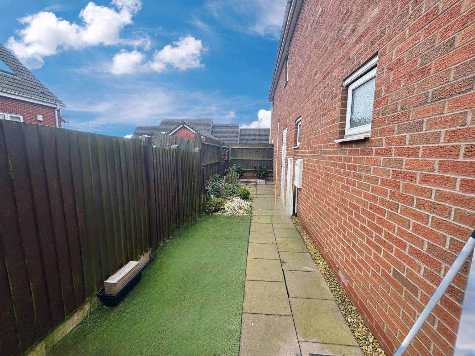 Outside - Low-maintenance outdoor area with side access, plus the major benefit of a private garage - a rare feature for this type of property.