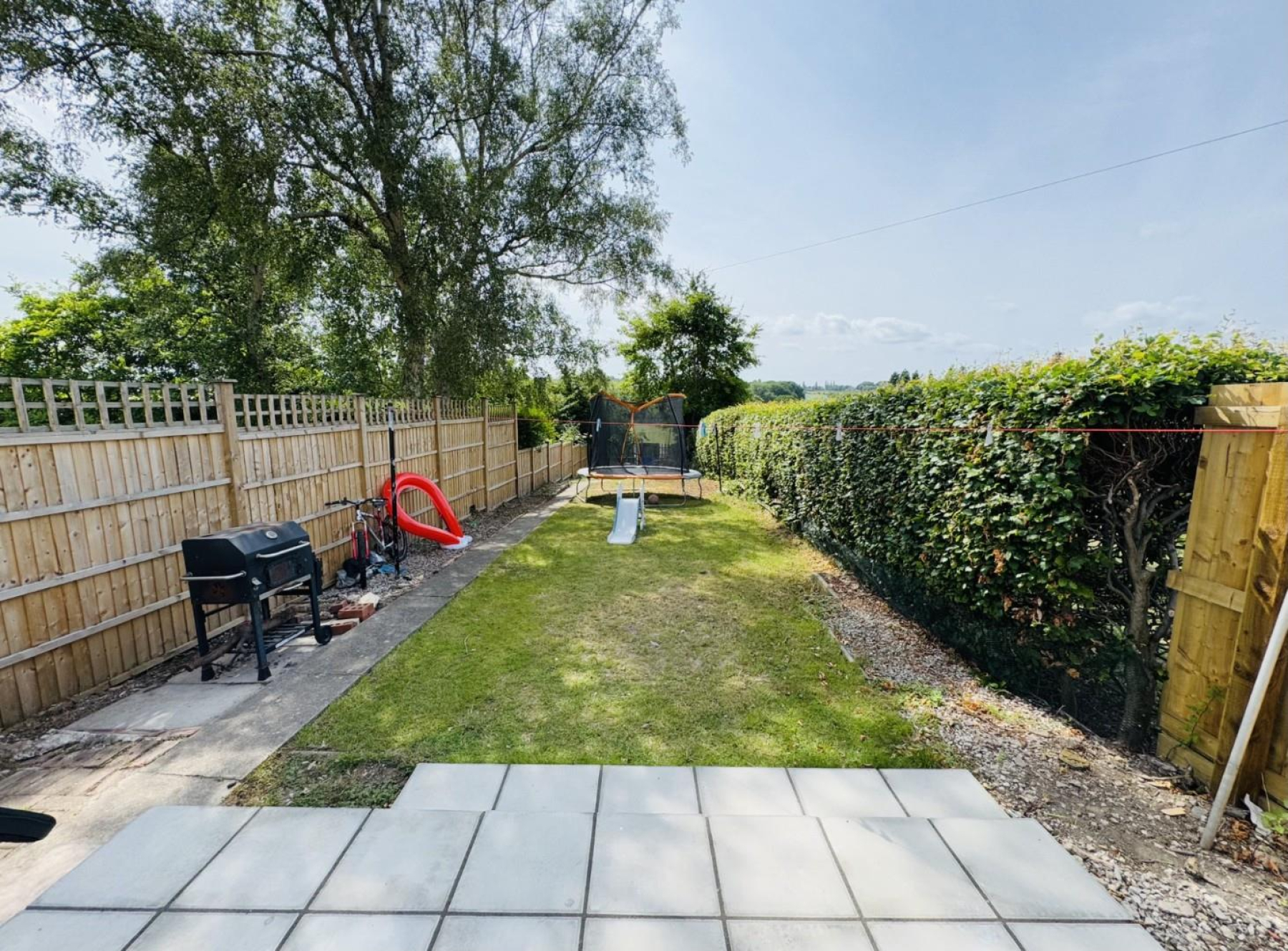Rear Garden - Excellent size, featuring a patio, lawn, and mature planting. Private and ideal for families, pets, or summer entertaining.