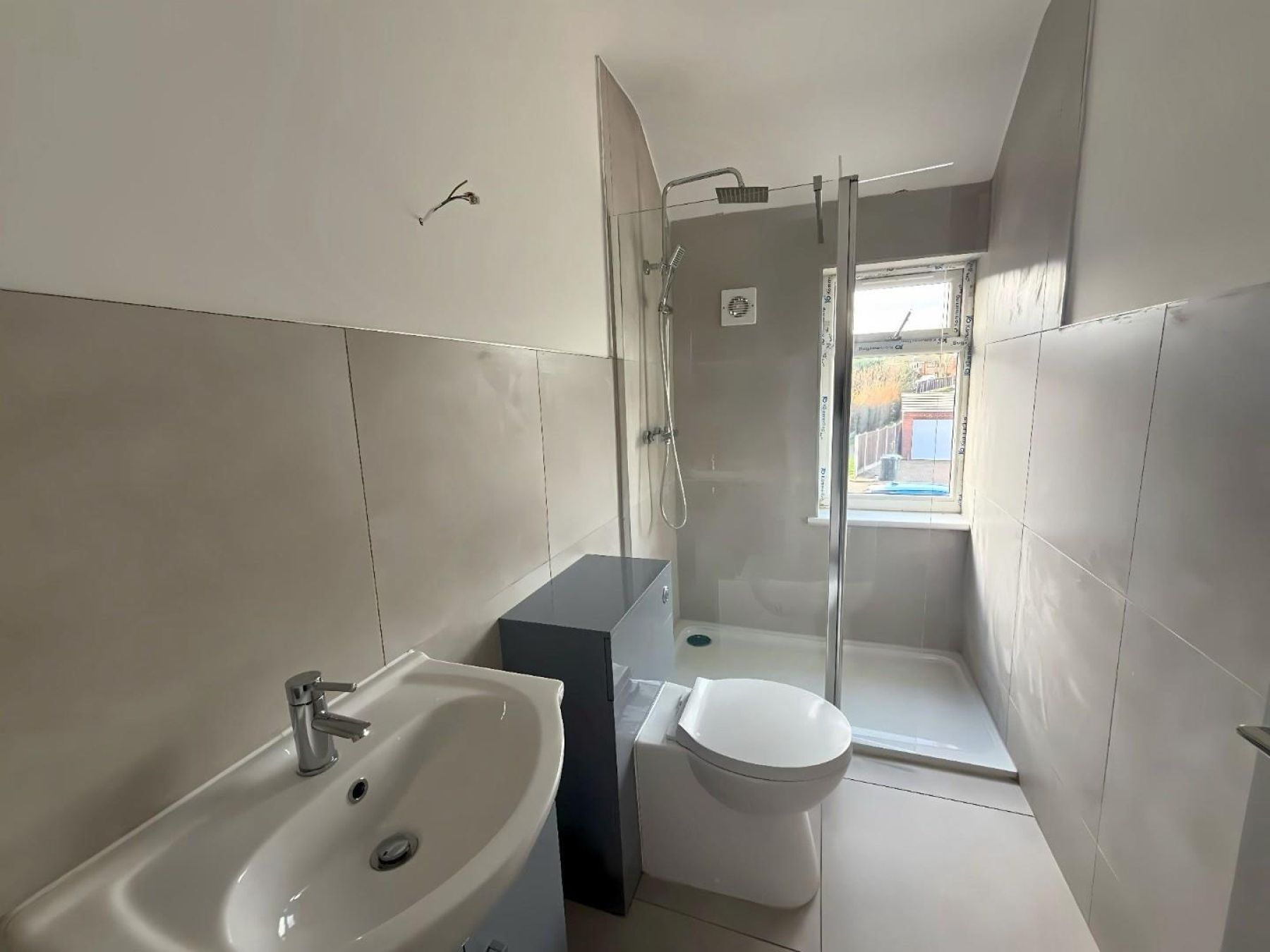 Shower Room - 1.33m x 2.67m (4'4" x 8'9") - Brand new modern shower room with walk-in shower, vanity unit, WC and contemporary tiling.