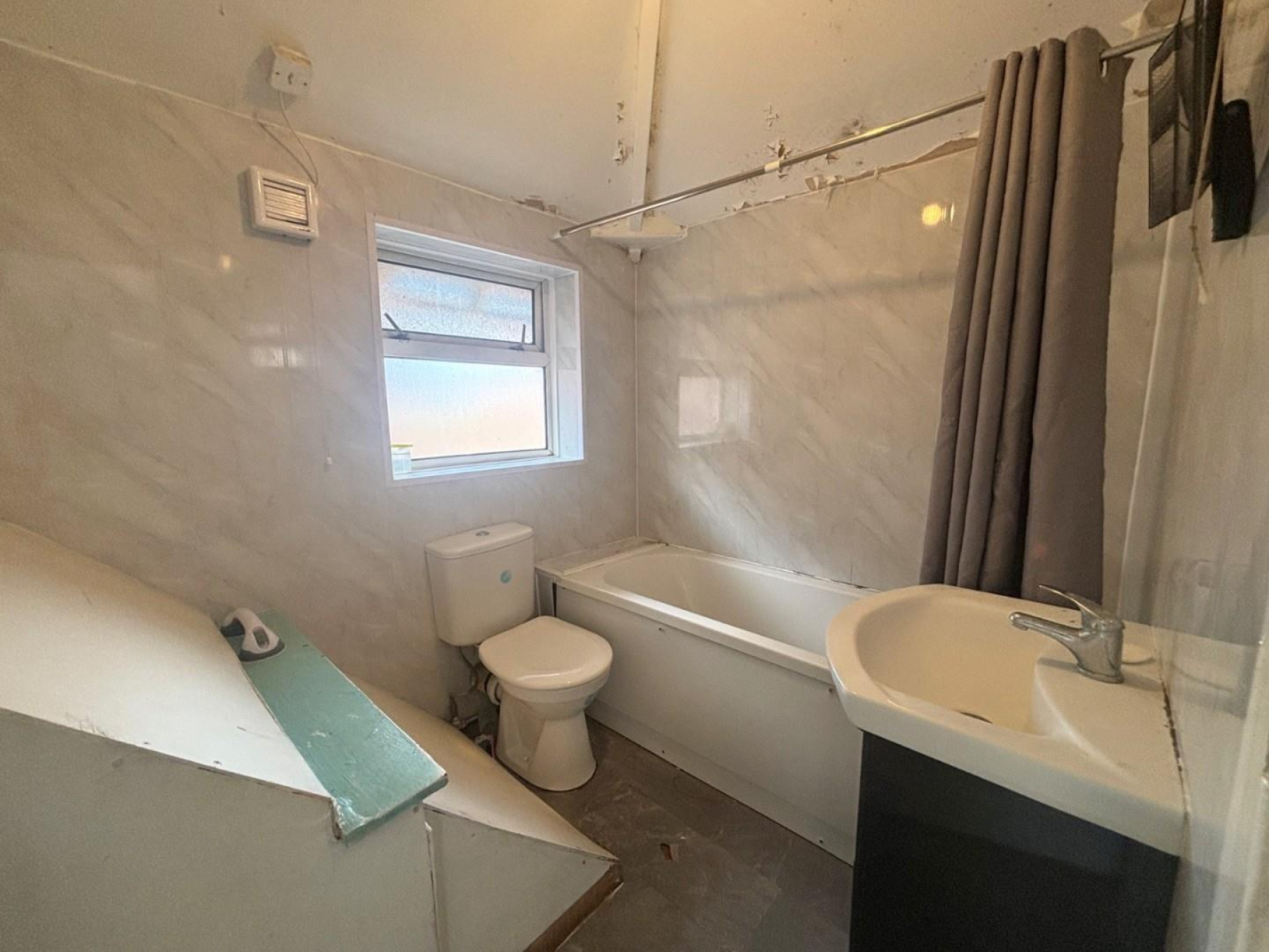 Bathroom - 1.65m x 2.60m (5'4" x 8'6") - Comprising bath with shower, WC, and wash basin. Functional layout with scope for refurbishment.