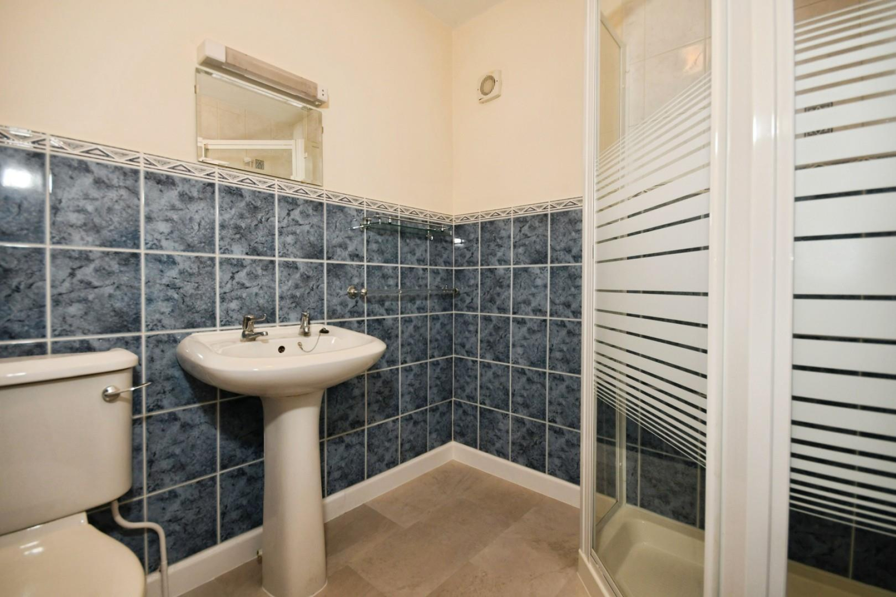 Shower Room - 2.10m x 1.70m ( 6'10" x 5'6") - Equipped with a shower enclosure, pedestal sink, low-level WC, and part-tiled walls in a practical layout.