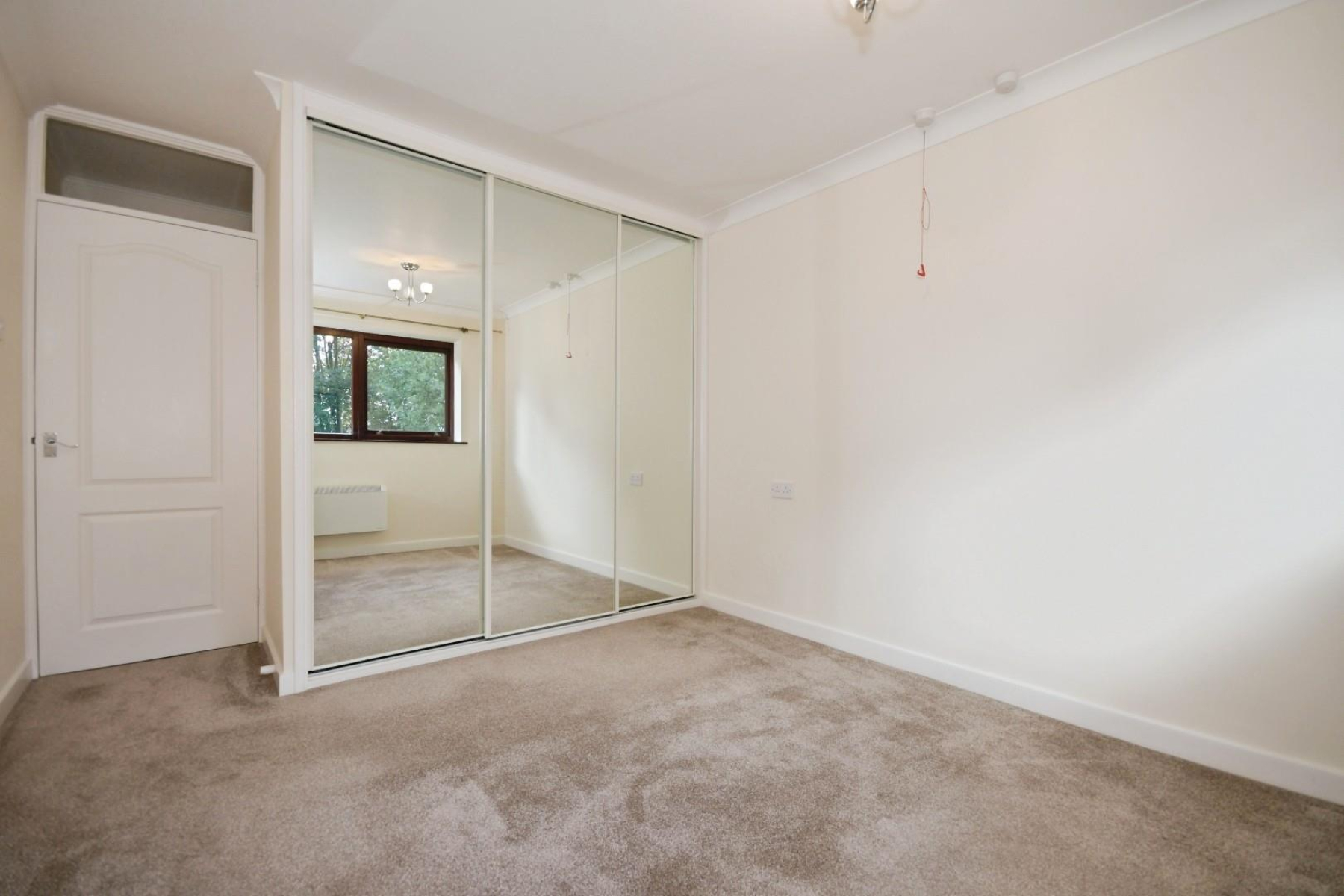 Bedroom - 3.80m x 3.00m (12'5" x 9'10") - Generously sized double bedroom with a full wall of built-in mirrored wardrobes and a large window offering views of greenery.