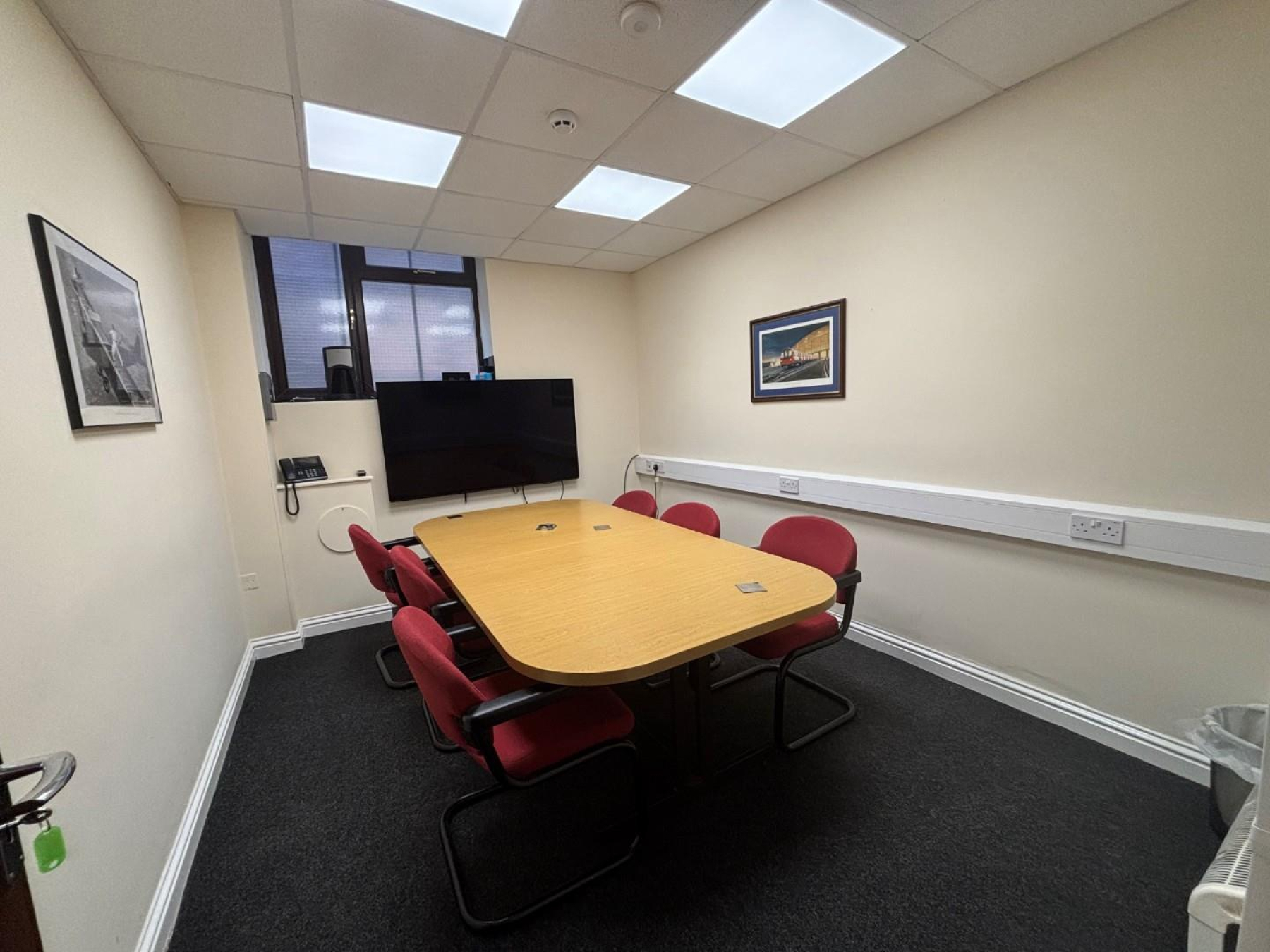 Meeting Room - 3.99m x 2.99m (13'1" x 9'9") - Shared access available by arrangement. Features a boardroom-style layout with seating, large monitor and phone system