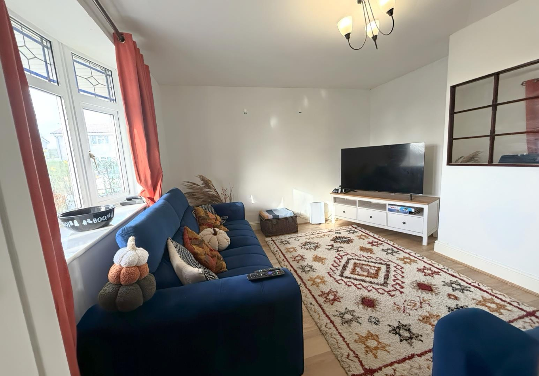 Living Room - 4.08m x 4.10m (13'4" x 13'5") - A bright and welcoming space with bay window, neutral décor, wooden flooring, and stylish lighting. Plenty of room for lounge seating and media unit. A perfect space to unwind.
