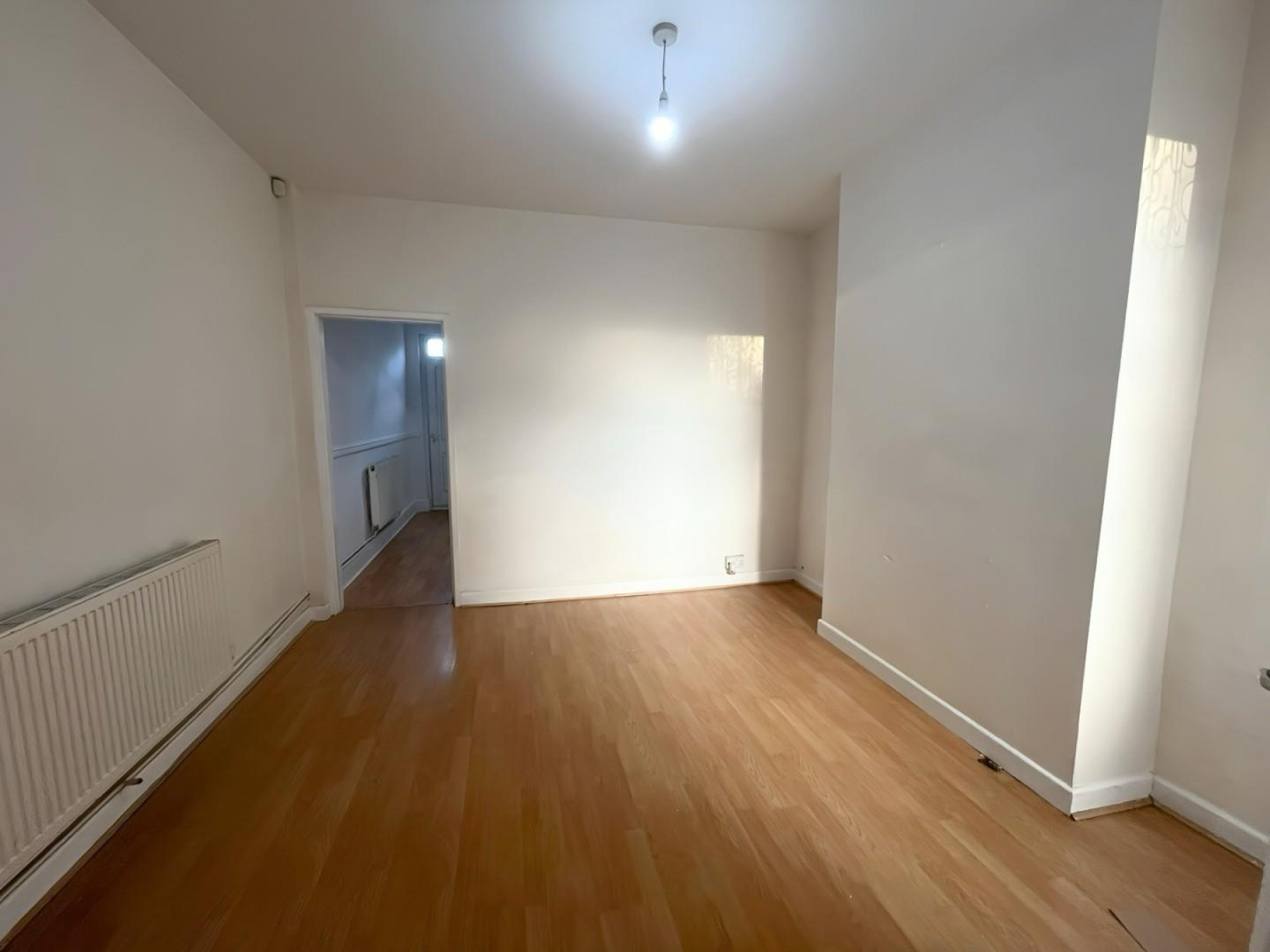 Front Reception Room - 3.26m x 3.53m (10'8" x 11'6") - Currently used as a bedroom, this versatile front reception room features a fireplace, laminate flooring, and a large window for natural light. Can be reconfigured to a cosy lounge or formal dining space.